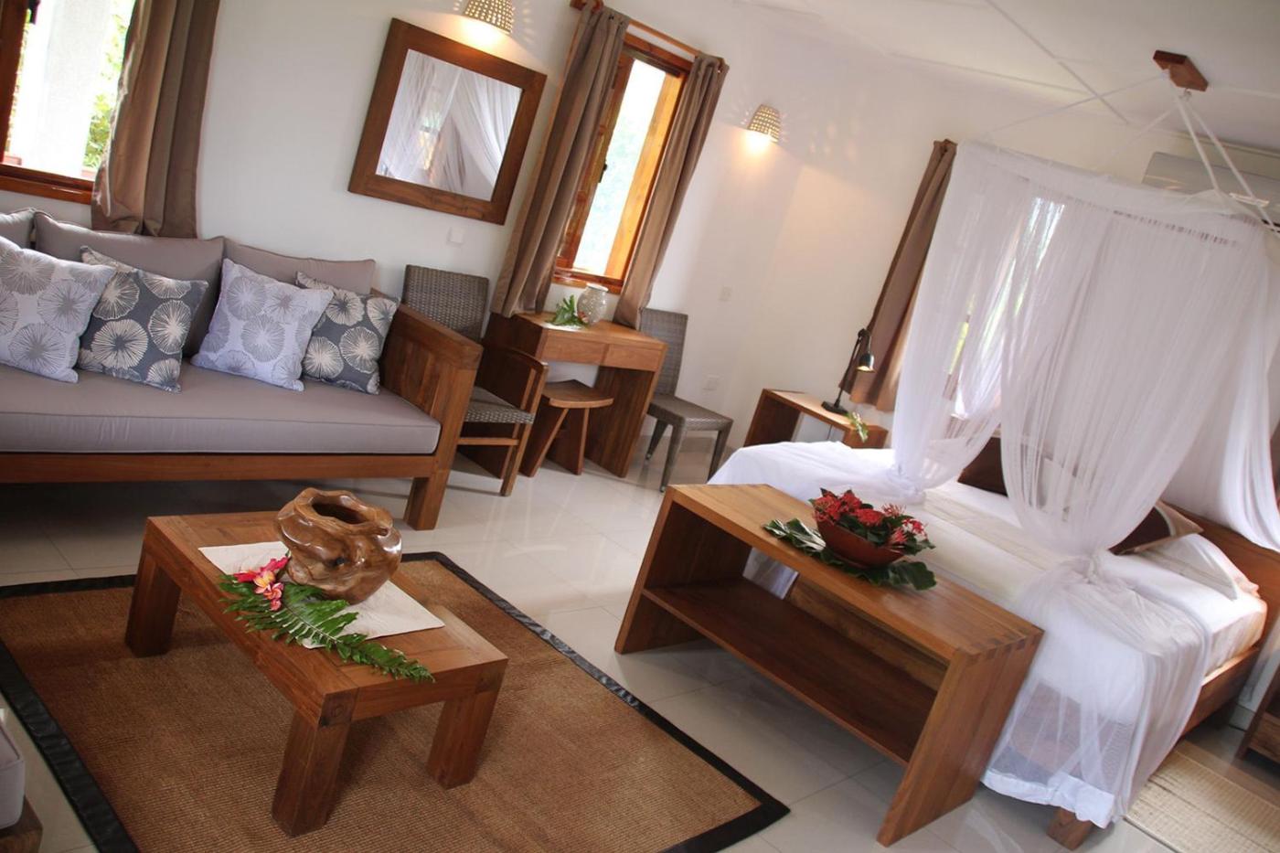 Villa Palmier - Bungalow (4 adults). This bungalow offers 2 bedrooms, each with separate access. The bungalow has a shared kitchen and each bedroom has its own seating area and dining table on the veranda. Please note that the 2 bedrooms are not interconnected. ;