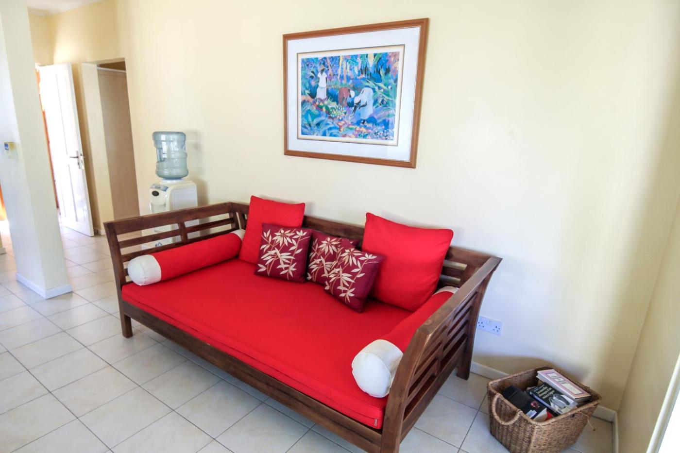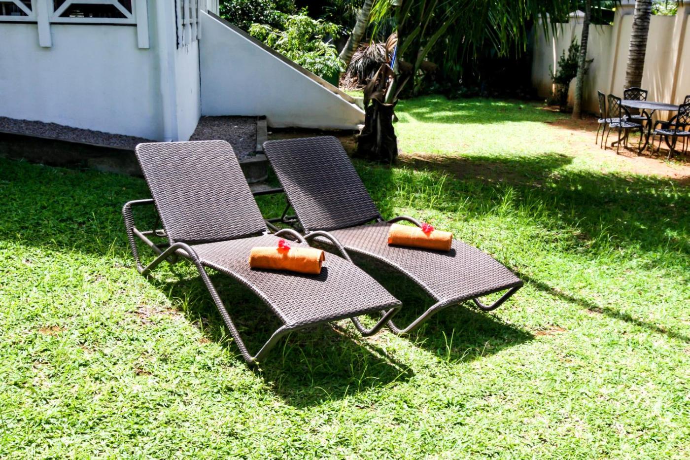 The residences are decorated in a bright Creole style and contain modern furniture and bathrooms. Each is air-conditioned and contains a TV in the lounge area. The villa offers extensive views of the Indian Ocean.