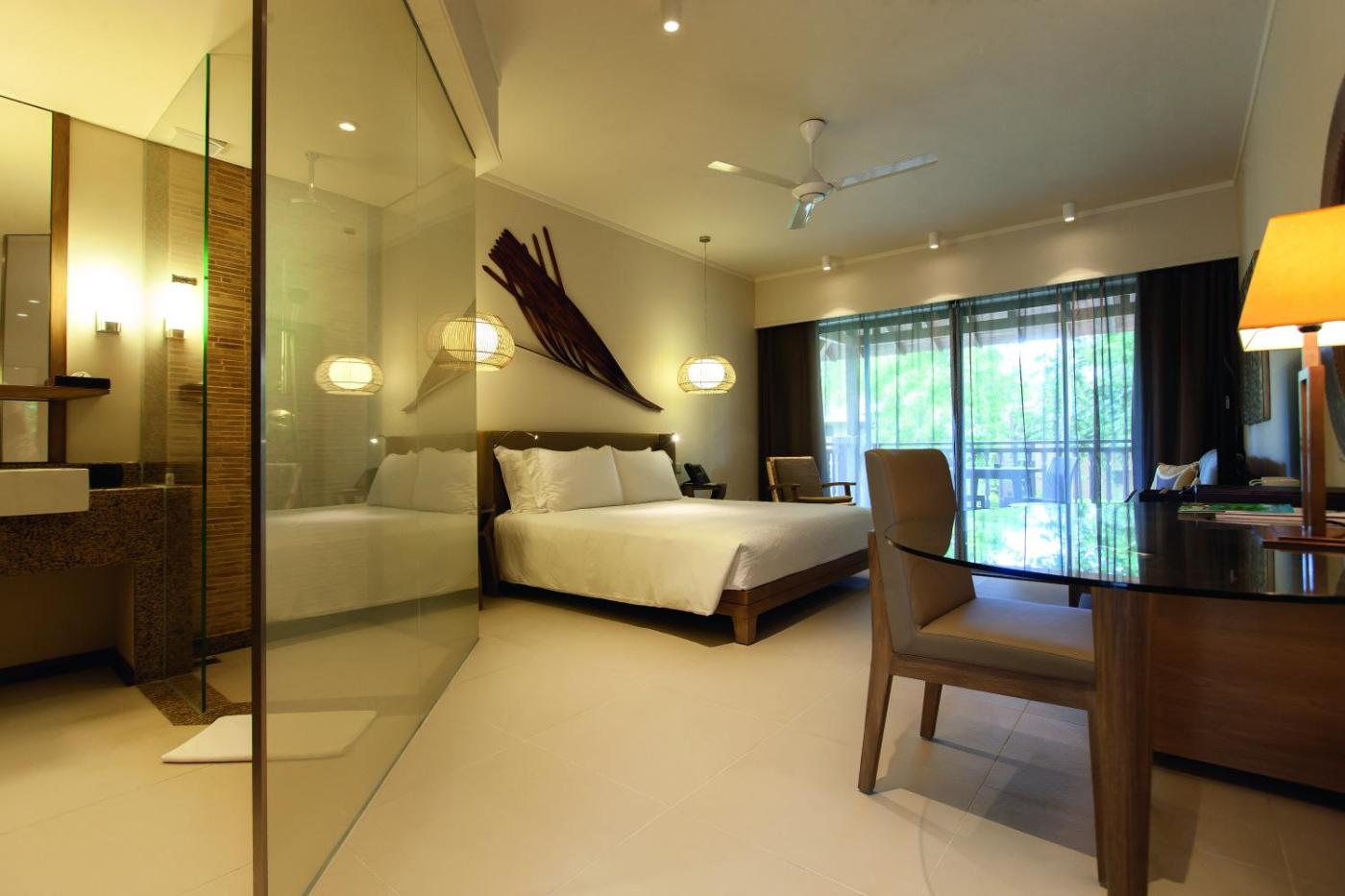 Senior Suite. This spacious suite comes with a fully furnished terrace with partial views of the Indian Ocean and only a few steps away from the beach. It offers a seating area, flat-screen TV and sofa bed. The bedroom has a private luxury bathroom complete with a bath, double basin and walk-in shower. ;